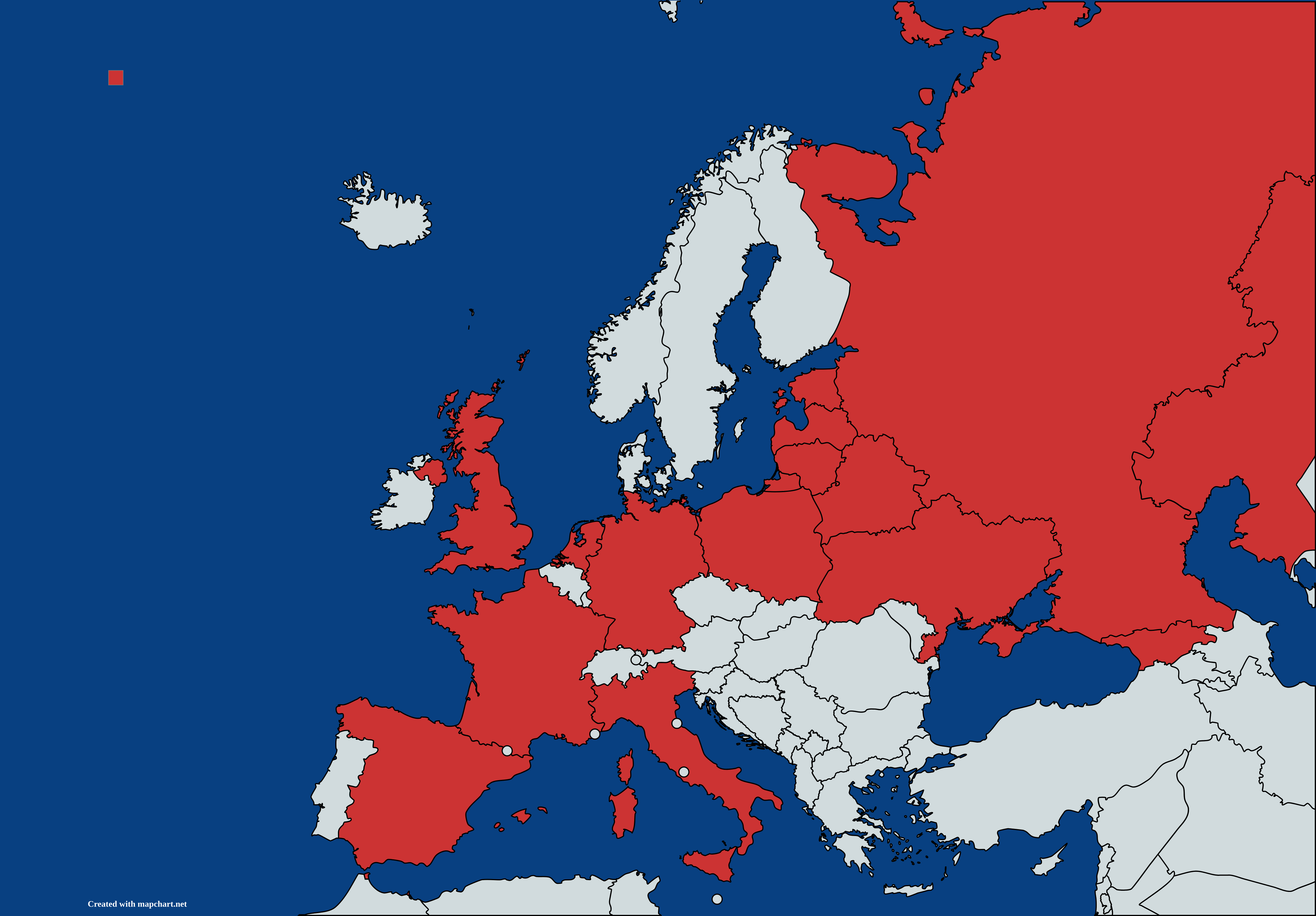 Карта стран Европы, в которых я был (отмечены по аналогии с регионами РФ)