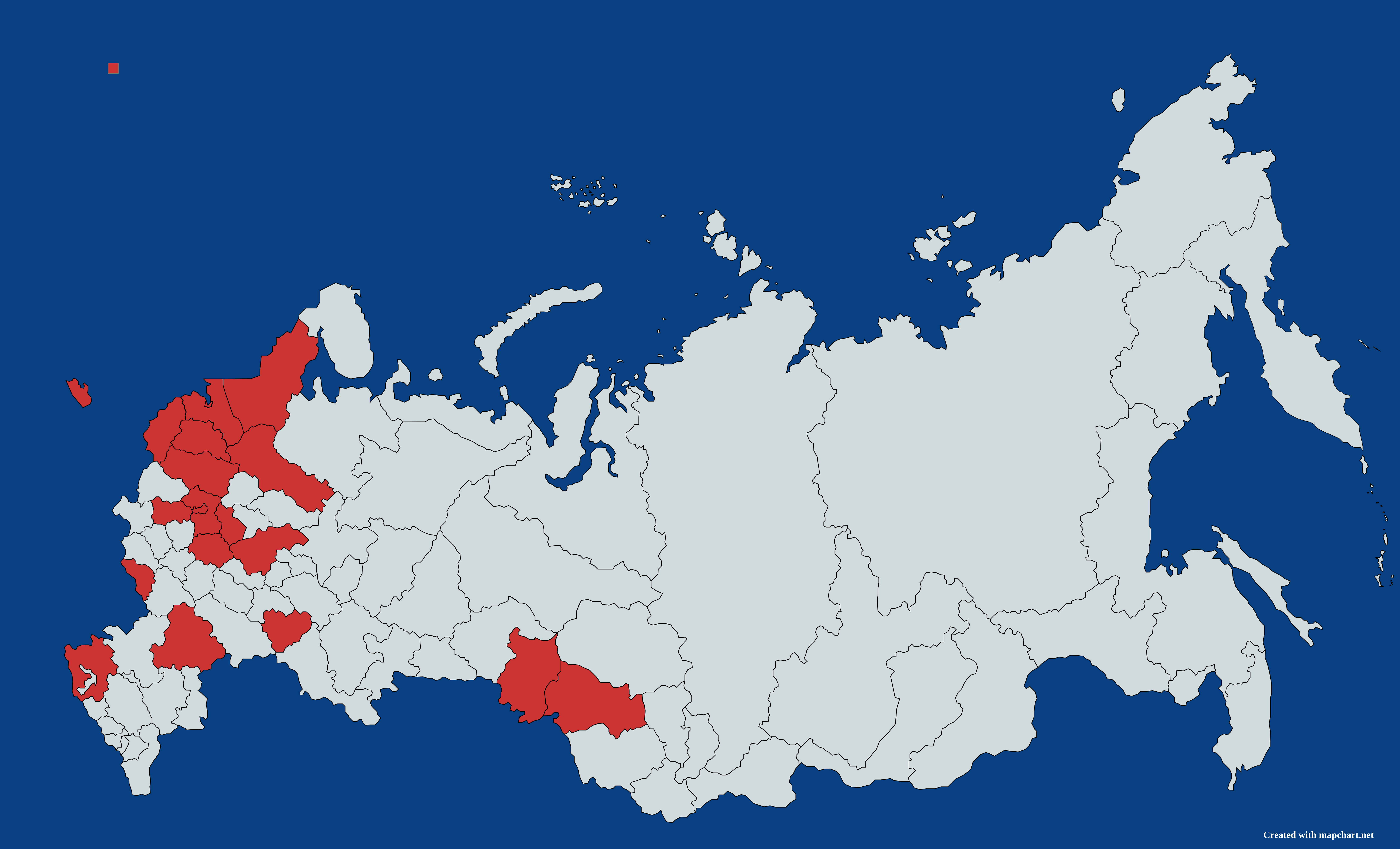 Карта регионов России, в которых я был (проезжал через другие регионы тоже, но тут отмечены только те, где я останавливался и выходил на 3+ часа). Также + ДНР, + Республика Крым, но в MapChart их нет))